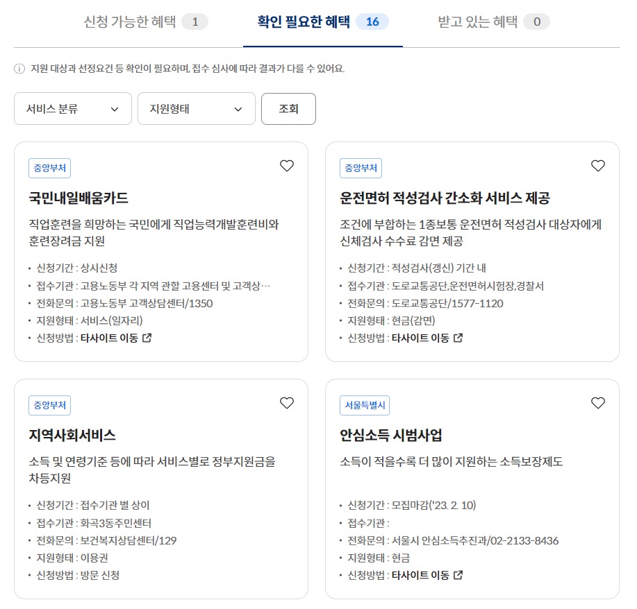 나에게 필요한 혜택에 신청기간과 조건이 맞는지 확인 하고 신청 합니다.